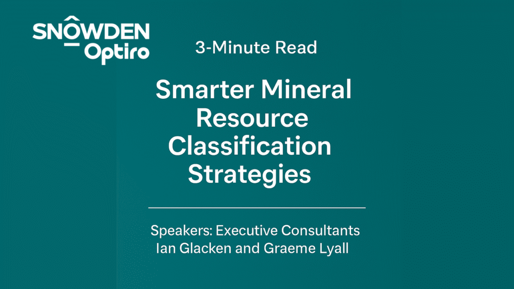 In this episode of Fresh Thinking, Snowden Optiro’s Ian Glacken and Graeme Lyall explore the nuts and bolts of mineral resource classification – from traditional drill spacing techniques to more robust methods like the two-indicator approach. This is part one of a two-part series diving into the evolving best practices for resource estimation.