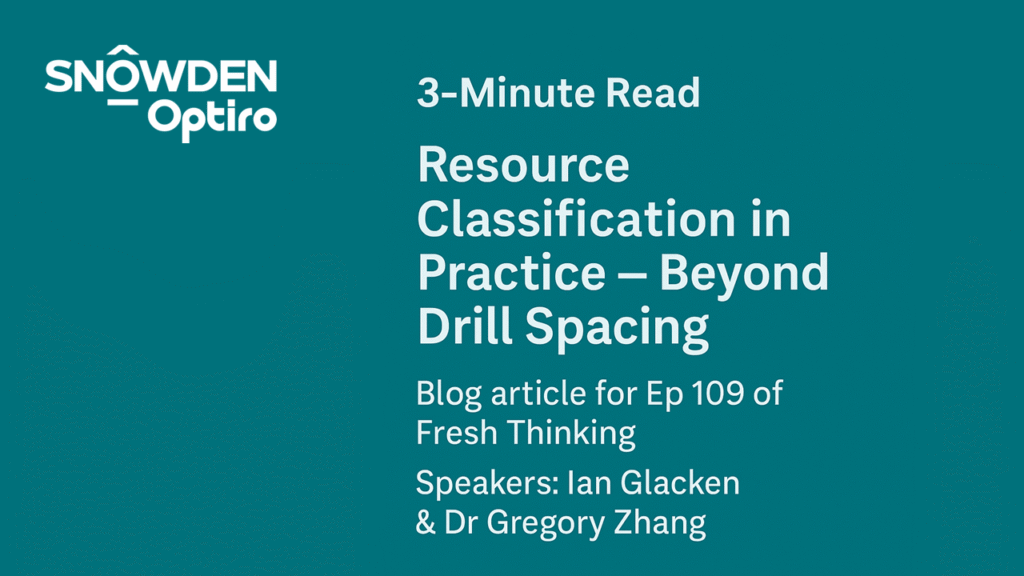 In this episode of our Fresh Thinking Podcast, Senior Consultant Dr Gregory Zhang sat down with Executive Consultant Ian Glacken to explore practical approaches to resource classification. Building on the first discussion in this series, Ian explained two widely used methods – the 90/15 approach and the scorecard method – and highlighted why classification goes far beyond drill spacing.